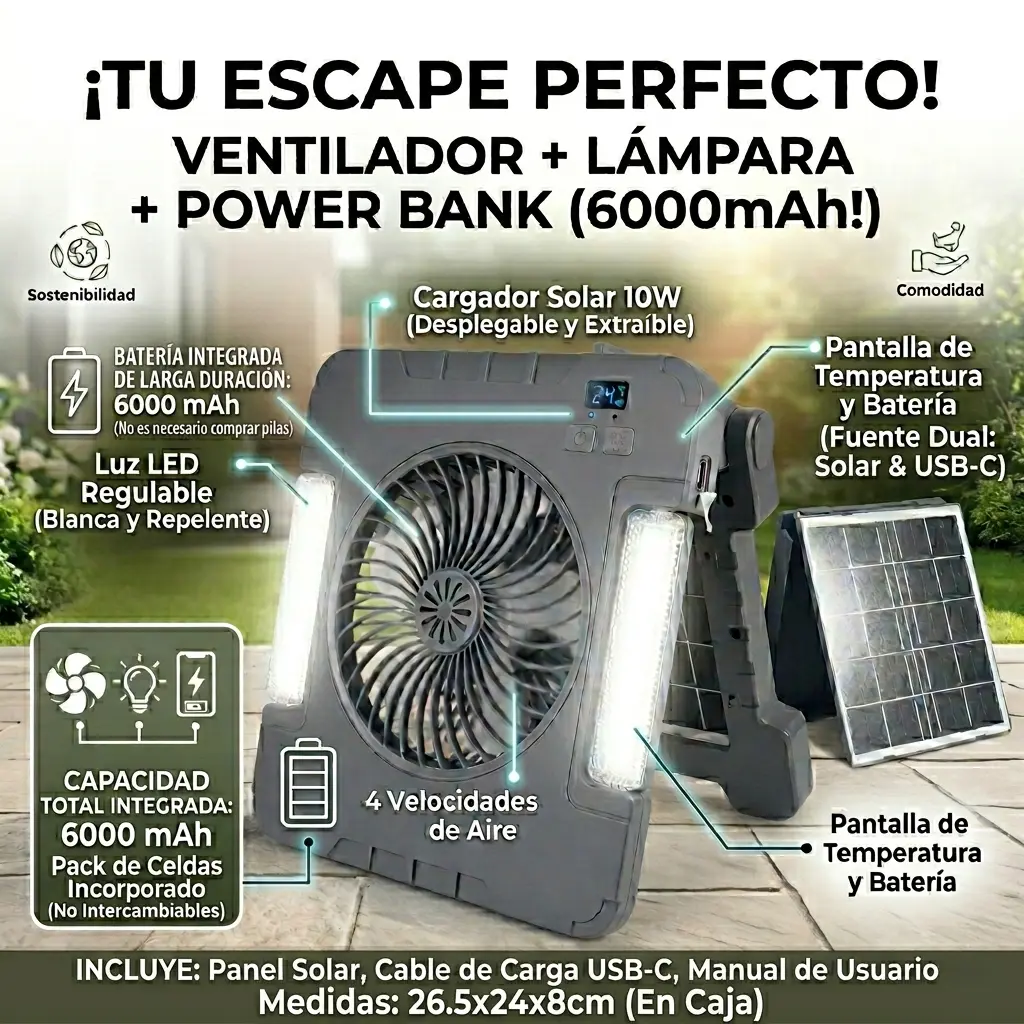 Ventilador Lámpara Solar Led Con Cargador Powerbank