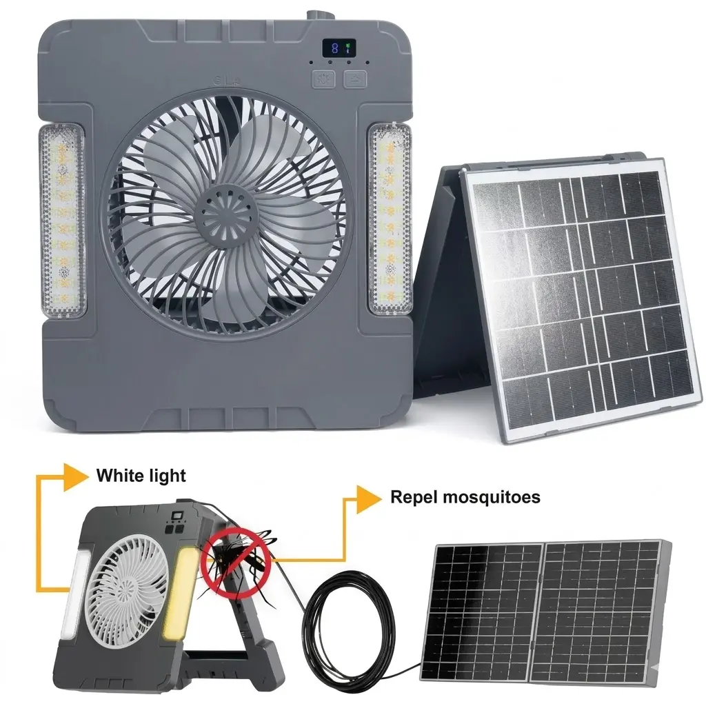 Iluminación LED: Proporciona luz blanca para iluminación doméstica o de camping, y luz repelente de mosquitos.